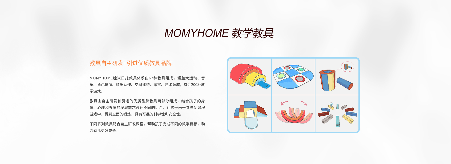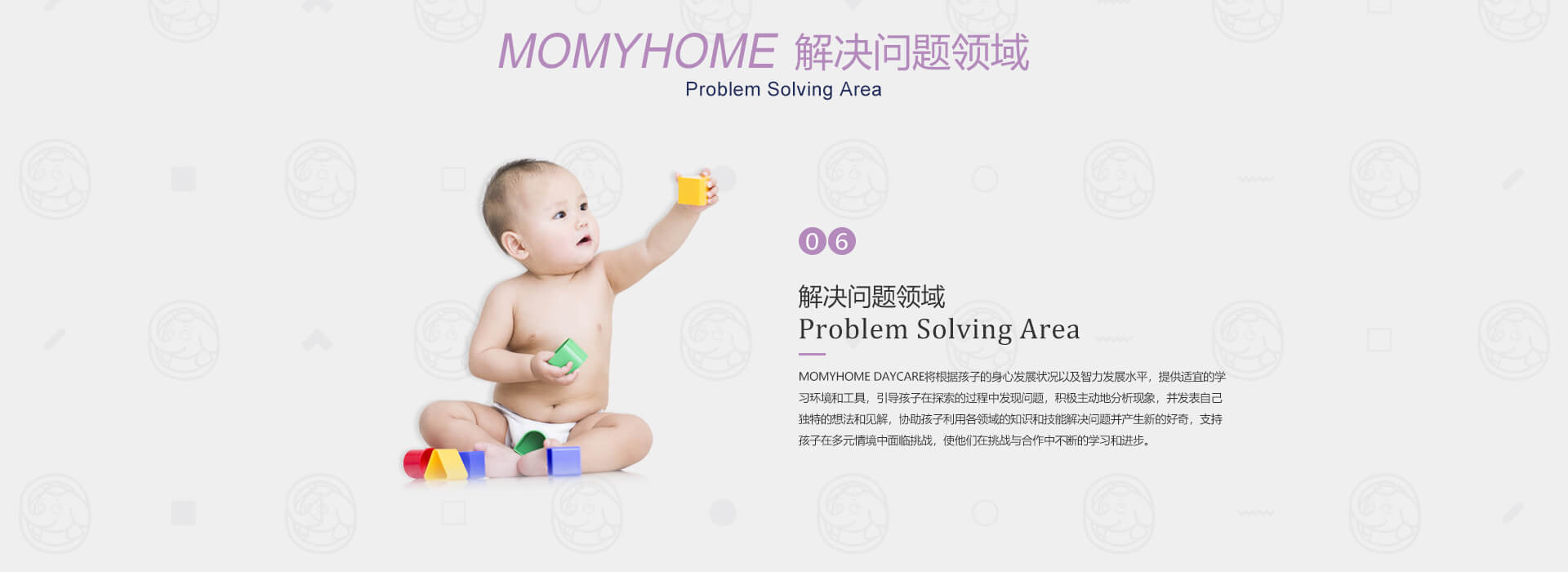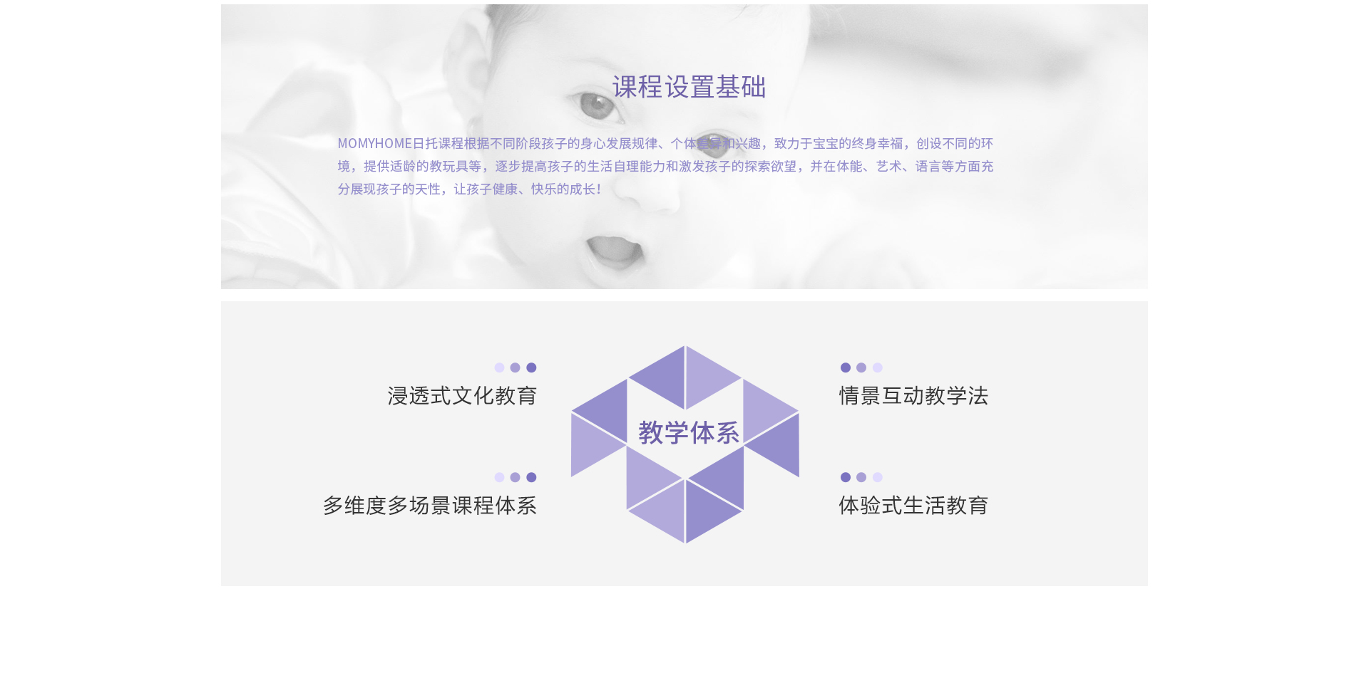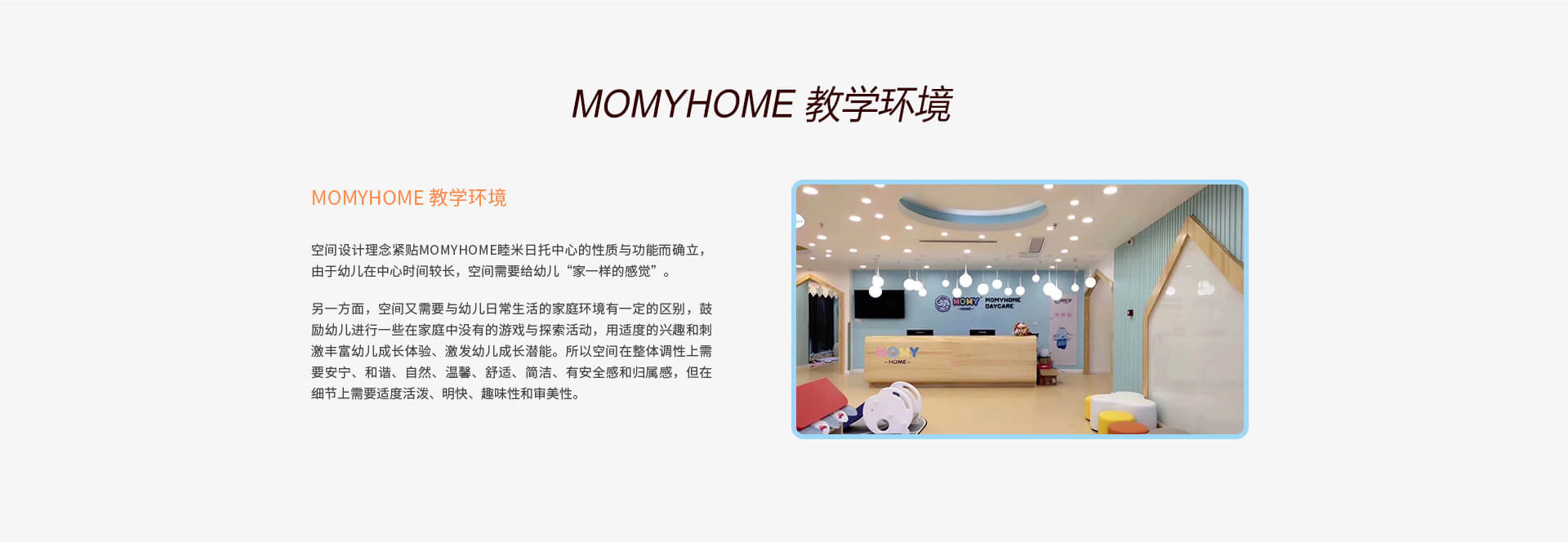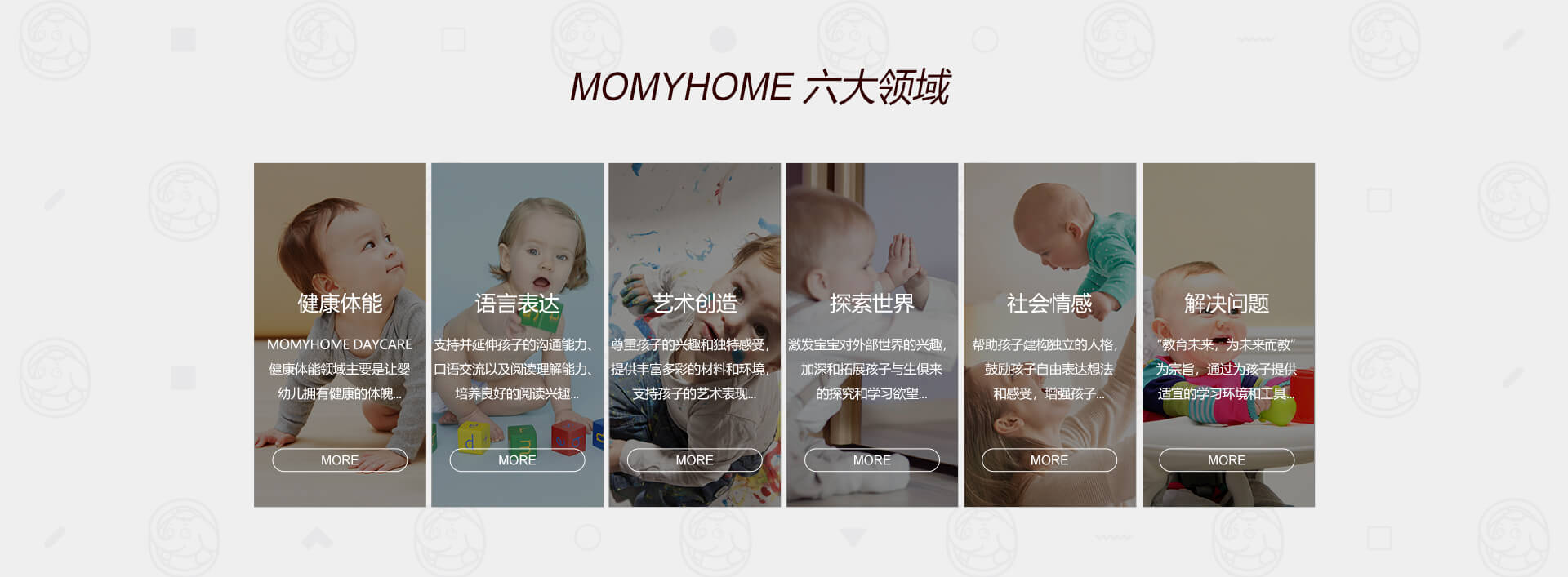 MOMYHOME日托重视宝宝全方位的发展,特别研发了适合0-4岁孩子的亲子特色课程,包含亲子抚触、亲子全能、亲子同乐和亲子阅读......