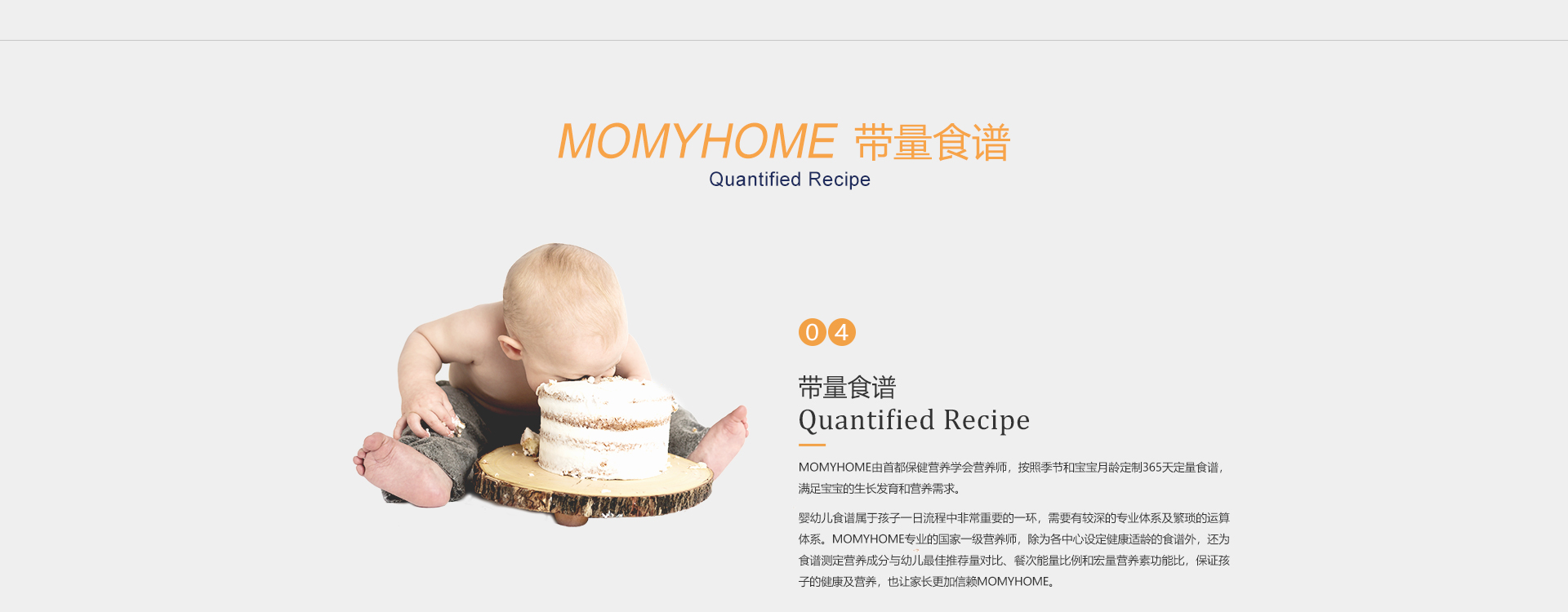 MOMYHOME由首都保健营养学会营养师,按照季节和宝宝月龄定制365天定量食谱,满足宝宝的生长发育和营养需求......